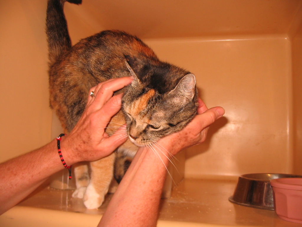 Shadow was brought to me by her owner, who was moving and could no longer keep her. She’s a sweet, quiet cat, very gentle.