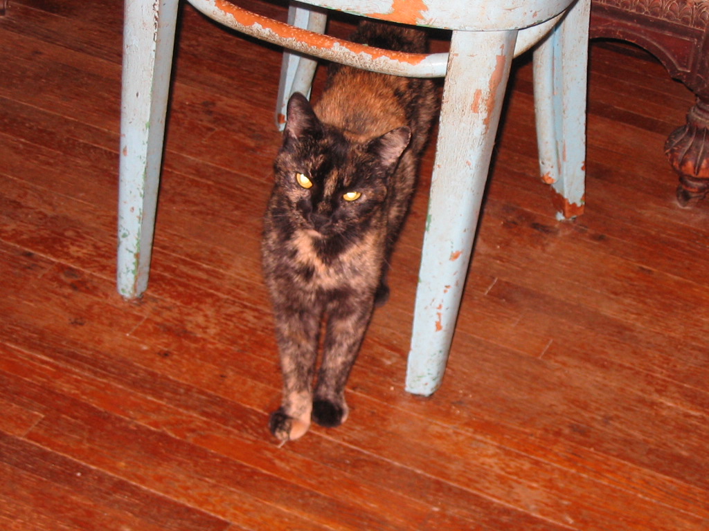 Chloe was taken from the home of a hoarder who could no longer care for her. She is a sweet, gentle kitty who likes petting.
